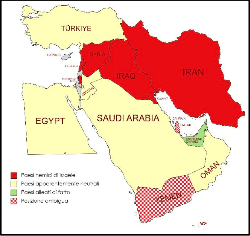Infine, assumono posizioni ostili ad Israele anche diversi Paesi dell’Africa settentrionale, quali Libia, Tunisia e Algeria. Il Marocco e il Sudan, invece, hanno mantenuto un atteggiamento di prudente neutralità.