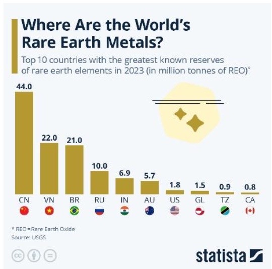Su Canada e Groenlandia il discorso ha invece natura differente. La Groenlandia ospita sul suo territorio preziosissime risorse naturali, a partire dalle terre rare, stimate intorno a 1.5 milioni di tonnellate (per avere un’idea, sull’intero territorio statunitense ce ne sono circa 1.8 milioni) [3]. Anche il Canada, come mostrato in figura, vanta importanti riserve. Sull’isola di ghiaccio sono anche presenti ingenti giacimenti di petrolio (34,8 miliardi di barili) e di gas