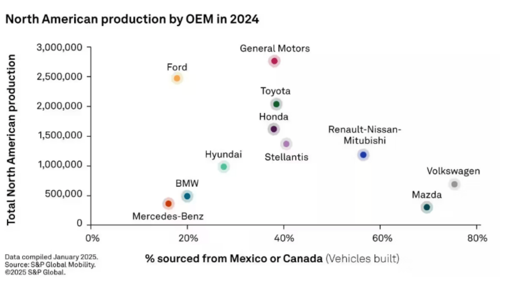 Se gli Stati Uniti pensavano di dettare unilateralmente le regole del gioco, la poter risposta internazionale non si è fatta attendere. Canada, Messico e Unione Europea hanno imposto dazi ritorsivi, erodendo i potenziali benefici per l’industria americana. Di conseguenza, la crescita della produzione negli USA, inizialmente prevista al 26%, potrebbe ridursi al 19%, erodendo i vantaggi per l’industria americana. Inoltre, il costo della produzione negli Stati Uniti rimane elevato e senza incentivi governativi le case automobilistiche rischiano di scaricare i maggiori costi sui consumatori o ridurre gli investimenti.